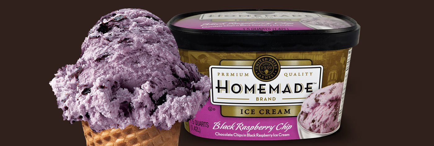 We add Black Raspberry flavor to fresh milk and cream, then pack every bite with our own blend of dark chocolate chips.
