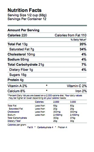 SKIM MILK, CREAM, FUDGE RIPPLE (SUGAR, CORN SYRUP, SKIM MILK, COCOA PROCESSED WITH ALKALI, PARTIALLY HYDROGENATED COCONUT AND SOYBEAN OIL, VANILLIN (ARTIFICIAL FLAVOR), STARCH, SALT, BAKING SODA), MINI PEANUT BUTTER CUPS [CHOCOLATE FLAVORED COATING (SUGAR, COCONUT OIL, COCOA POWDER PROCESSED WITH ALKALI, NONFAT MILK POWDER, WHOLE MILK POWDER, PALM STEARINE, SOY LECITHIN, NATURAL FLAVOR), PEANUT PASTE (PEANUTS, SALT)], PEANUT BUTTER (PEANUTS, PEANUT OIL, SUGAR, SALT), SUGAR, CORN SYRUP, WHEY, STABILIZER (MONO & DIGLYCERIDES, CELLULOSE GUM, CAROB BEAN GUM, CARRAGEENAN), ANNATTO (NATURAL COLOR).