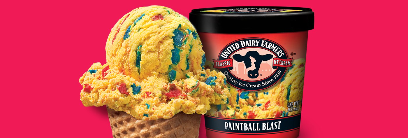 This sweet yellow cake ice cream swirled with red and blue cherry SweeTARTS® frosting might be more fun than paintball itself (and definitely more delicious).