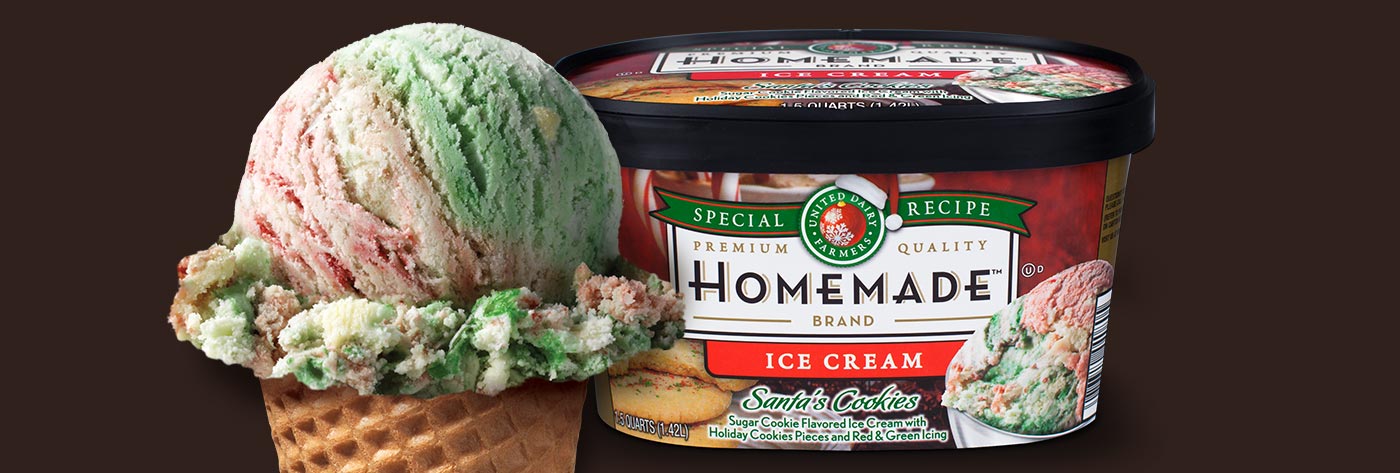 Want to have the happiest holidays ever? Treat yourself to a scoop of sugar cookie-flavored ice cream, swirled with red and green frosting and speckled with pieces of holiday cookies.