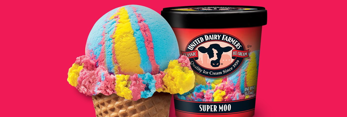 Yellow Vanilla, red cherry and blue sweet Vanilla ice cream—this bright treat is fun by the dip!